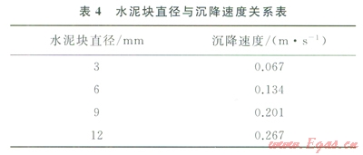 要返出地面液體的上升速度為固體沉降速度的2倍及以上,固體物質(zhì)才能被順利的帶出地面,達(dá)到洗井的效果。根據(jù)力學(xué)分析及水動力學(xué)分析,可以得到固體在液相中的重力沉降速度,密度為3.03.15gcm3硅酸鹽水泥在密度為1.3gcm3的鉆井液,可計算得沉降速度詳見表4。