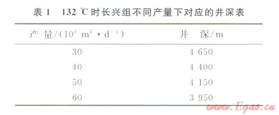 元壩氣陽長興組儲層溫度在160℃,H2S平均含量5.14%,可能有單質(zhì)硫的存在,依據(jù)ISO 15156及腐蝕評價試驗(yàn),結(jié)合產(chǎn)量預(yù)測井筒內(nèi)部的溫度分布,在井深小于等于4000m選用4C類鎳基合金油管、718材質(zhì)完井投產(chǎn)工具,井深大于等于4000m選用4D類鎳基合金材質(zhì)及725材質(zhì)完井投產(chǎn)工具[3-4]。132℃時長興組不同產(chǎn)量下對應(yīng)的井深如表1所示。
