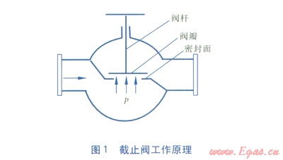 供熱管道上常用的大口徑閥門有金屬硬密封蝶閥、閘閥、截止閥,通常DN 200mm及以下口徑的閥門宜采用截止閥,DN 250~600mm口徑宜采用閘閥,DN 700mm及以上口徑宜采用多層金屬硬密封蝶閥。對于0.6MPa以下的供熱管道,截止閥的口徑可用到DN 400mm。這是由于對于同等口徑的閥門,截止閥的密封面積最大,密封面積越大,閥門就越耐用,因此盡可能采用截止閥。但截止閥的缺點是作用在閥瓣上的壓力p所產(chǎn)生的力直接作用在閥桿的軸向上(見圖l),閥門的口徑越大,作用在閥桿軸向上的推力越大,因此,截止閥的口徑不宜過大。市場上也沒有很大口徑的截止閥。
