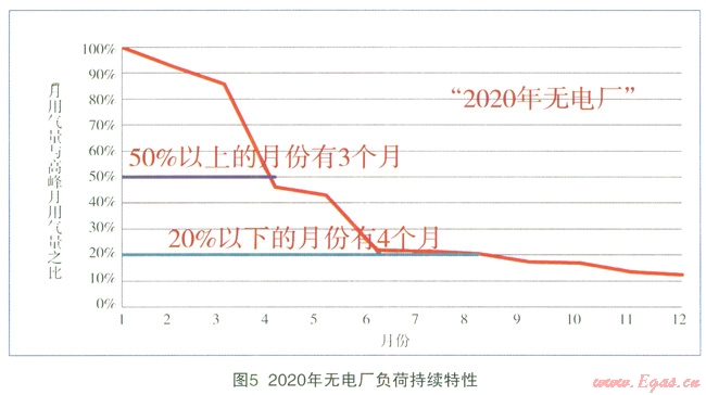 計(jì)算表明:預(yù)計(jì)到2020年,有電廠的最大月不均勻系數(shù)為2.05,無(wú)電廠2.45有電廠的最大月不均勻系數(shù)最小,“峰值”與“均值”的偏離程度最小,如圖1所示。
