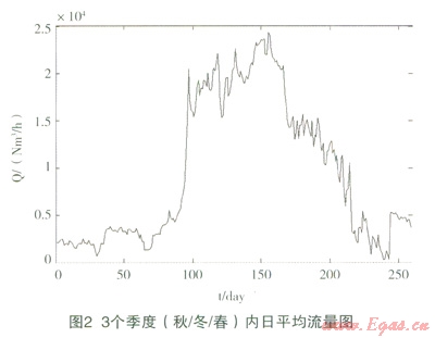 圖1表示:用氣高峰日和非高峰日內(nèi)下游用戶一天內(nèi)用氣量隨時(shí)間的變化過(guò)程;圖2表示:一年內(nèi)260天的日平均用氣量。從圖1和圖2中可以看出:高峰日和非高峰日,高峰時(shí)段和非高峰時(shí)段時(shí),天然氣的流量變化范圍很大,在考慮性價(jià)比的情況下,實(shí)際流量計(jì)的選擇必須覆蓋流量上限。由此可能會(huì)出現(xiàn):在用氣量低谷時(shí),實(shí)際運(yùn)行流量接近或低于流量計(jì)下限,從而引起流量的測(cè)量不準(zhǔn)確。