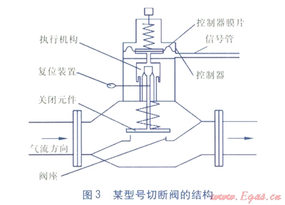 燃?xì)馇袛嚅y作為城鎮(zhèn)燃?xì)廨斉湎到y(tǒng)中重要的安全設(shè)備,廣泛地應(yīng)用于燃?xì)廨斉鋸S站、各級(jí)調(diào)壓站和調(diào)壓箱內(nèi)。燃?xì)馇袛嚅y安裝于調(diào)壓器的上游管道上,其主要功能是,當(dāng)調(diào)壓器出現(xiàn)工作異常情況而導(dǎo)致出口壓力過(guò)高或過(guò)低時(shí),及時(shí)切斷燃?xì)馔?span lang="EN-US">(超壓切斷或欠壓切斷),確保下游用戶和設(shè)備的用氣安全[1-2]。城鎮(zhèn)燃?xì)馇袛嚅y一旦關(guān)閉后,一般需要人工復(fù)位,不能自動(dòng)開(kāi)啟[3]。切斷閥的質(zhì)量和性能直接影響到城鎮(zhèn)燃?xì)廨斉湎到y(tǒng)的安全可靠性。