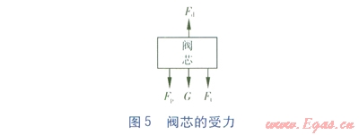 壓力調(diào)節(jié)器閥芯的受力見圖5。當(dāng)比例線圈未施加電流時,線圈產(chǎn)生的電磁力Fd,為0,在閥芯重力G、彈簧作用力Ft、燃?xì)鈱δて淖饔昧?span lang="EN-US">Fp共同作用下閥芯處于關(guān)閉狀態(tài)。