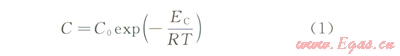 式中C為氣體的滲透系數(shù),(cm3·cm)/(cm2·s·Pa);C0為前端因子;Ec表示滲透活化能;R為摩爾氣體常數(shù),8.31×10-3kJ/(mol·K)。