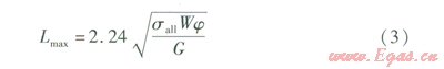 式中Lmax——活動(dòng)支架的允許間距,m