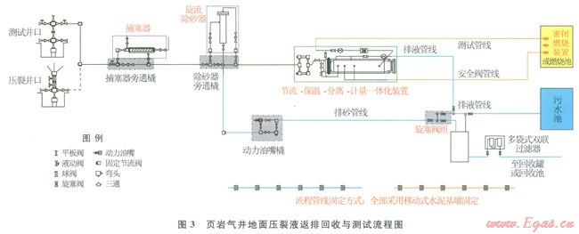 試油測(cè)試作業(yè)是油氣田開發(fā)中不可缺少的環(huán)節(jié),環(huán)保試油是一種全新的發(fā)展理念,即在試油生產(chǎn)過程的各個(gè)環(huán)節(jié)采取“環(huán)保”措施,將試油工藝技術(shù)、試油過程和環(huán)境保護(hù)等有機(jī)地結(jié)合起來,從而實(shí)現(xiàn)環(huán)境影響最小、資源使用最少及經(jīng)濟(jì)效益最優(yōu)[1]。目前陸地上試油測(cè)試作業(yè)涉及對(duì)環(huán)境的影響主要包括殘酸廢液、地層水排放,采用打水泥基墩同定放噴測(cè)試管線以及采用修建燃燒池的方式燃燒放噴天然氣體對(duì)耕地造成的破壞,以及現(xiàn)場(chǎng)排液中溶解的有害有毒氣體的揮發(fā)造成環(huán)境大氣的污染等問題。如何防止和減少試油測(cè)試作業(yè)過程中對(duì)環(huán)境的污染是一個(gè)不可忽視的重要課題[2-3]。因此著力于試油測(cè)試持續(xù)和健康發(fā)展的思想,針對(duì)上述試油測(cè)試過程中普遍存在的難題,開展工藝技術(shù)的研究,形成了一套集“移動(dòng)式基墩固定放噴測(cè)試管線、密閉燃燒裝置燃燒放噴天然氣體、壓裂返排液精細(xì)化過濾回收和含硫井排出液自動(dòng)實(shí)時(shí)除硫”為一體的試油測(cè)試新工藝技術(shù),實(shí)現(xiàn)試油測(cè)試過程中的“環(huán)保、降耗、減污、增效”的目標(biāo)。