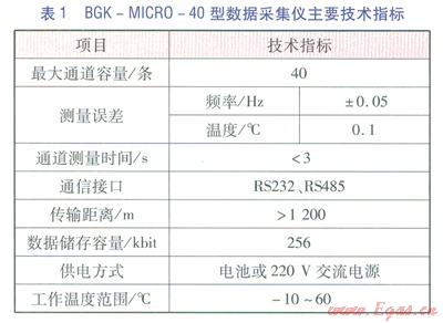 BGK-ICR0-40型數(shù)據(jù)采集儀見圖4,主要技術指標見表l。BGK-MICR0-40型數(shù)據(jù)采集儀主要功能為:遠程控制和數(shù)據(jù)采集功能?,F(xiàn)場操作功能:預留有與便攜式計算機的接口,可實現(xiàn)現(xiàn)場標定、調(diào)試以及數(shù)據(jù)采集等功能。實時時鐘管理:為定時測量、自動儲存等功能提供時間基準。斷電保護:所有參數(shù)和監(jiān)測數(shù)據(jù)儲存在專用非易失性儲存器中,可確保斷電后參數(shù)和數(shù)據(jù)的安全??估讚簦涸陔娫聪到y(tǒng)、通信線路接口、模擬輸入引線等處設置了有效的抗雷擊電路。抗電磁干擾:模塊采用金屬盒封裝,在電路設計上對通信接口采用光電隔離技術,具備很強的抗電磁干擾能力。智能化測量功能:可根據(jù)要求實現(xiàn)定點測量、定時測量、即時測量等多種測量方式。多種供電方式:可實現(xiàn)電池及220V交流電源供電,內(nèi)置可充電免維護電池,保證在外部供電中斷情況下繼續(xù)正常運行168h以上。