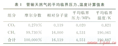 式中p¢c為天然氣的平均臨界壓力,Pa;pci為天然氣中組分i的臨界壓力,Pa;T¢c為天然氣的平均臨界溫度,K;Tci為天然氣中組分i的臨界溫度,K;yi為天然氣中組分i的摩爾分?jǐn)?shù)。