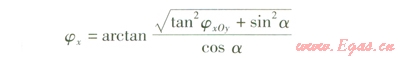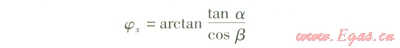 在實際設計中,還有這樣的情況:其他條件不變,非戈軸管臂在xOy面上的投影與x軸夾角a未知,已知非x軸管臂在yOz面的投影與t軸夾角為b,見圖1。這種條件下,jx的計算式為: