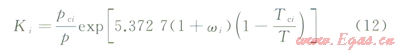 由各組分的臨界溫度(Tci)、臨界壓力(pci)以及地層溫度(T)和壓力(p),給出一個計算初始Ki值的經(jīng)驗公式為: