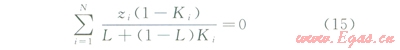 由于0=∑xi-∑yi=一∑xi(1-Ki),由方程(14)容易得到: