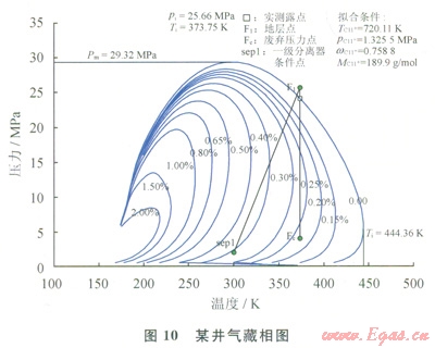 1)凝析氣藏相圖。根據(jù)凝析氣藏不同開發(fā)階段需要進(jìn)行測(cè)試,但該數(shù)據(jù)只能反映某時(shí)段凝析氣藏流體的整體情況,而單井流體組成具有特殊性(各井產(chǎn)出流體氣油比、含水率與整個(gè)氣藏不一定相同)和時(shí)效性(各井隨開采時(shí)間的增加流體組成不同),采用凝析氣藏相圖與單井實(shí)際情況存在較大差異。