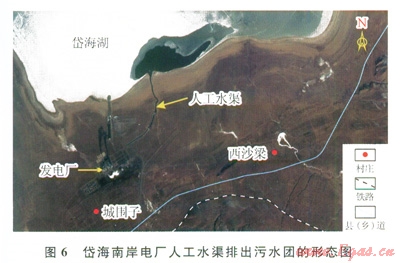 遠(yuǎn)砂壩位于河口壩外側(cè),與河口壩相接,是河口壩向湖的延伸,只是由于水體變深,水動(dòng)力變?nèi)?,沉積物以粉砂和泥質(zhì)粉砂為主,顏色也偏暗。粉砂和泥主要是呈懸浮狀態(tài)由靠慣性向前流動(dòng)的河水搬運(yùn)、沉積的。在沉積過程中,沿岸流的作用可使混濁的河水向兩側(cè)擴(kuò)散。因此遠(yuǎn)砂壩的沉積范圍比河口壩的要大。在岱海南岸有一個(gè)發(fā)電廠,排出的污水沿人工渠流入湖中。人工渠寬約10m,水深約1m,流速較急,約0.7m/s,與辮狀河流速相近。污水在湖中的擴(kuò)散形式可以反映河水在湖泊中的擴(kuò)散形式(圖6)。