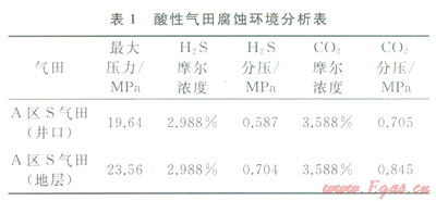 根據(jù)阿姆河酸性氣田的井口最大關(guān)井壓力和地層壓力,以實(shí)測數(shù)據(jù)進(jìn)行校正,得到硫化氫分壓為0.58~0.7MPa,二氧化碳分壓為0.71~0.85MPa(表1)。