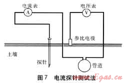 雜散電流探針測試法及其評價準則是基于10年以上的工作經(jīng)驗而制訂的,可用于陰極保護管道雜散電流測試,但電流測試中易受到陰極保護電流等影響,儀器測試精度也有待提高,目前在國內還沒有應用實例。