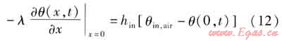 a. 墻體兩側(cè)均為第三類邊界條件墻體內(nèi)壁面邊界條件為: