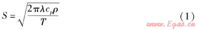 在建筑熱工研究中,把某一勻質(zhì)半無(wú)限大平壁一側(cè)受到諧波熱作用時(shí),迎波面上接受的熱流波幅與該表面的溫度波幅之比作為材料的蓄熱系數(shù)。蓄熱系數(shù)越大,墻體材料的熱穩(wěn)定性越好。墻體材料蓄熱系數(shù)S的計(jì)算式為: