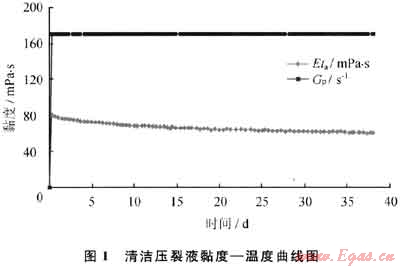 采用Fann50黏度計測試破膠液性能如表1所示,該清潔壓裂液在90℃、2~4h內(nèi)破膠徹底。