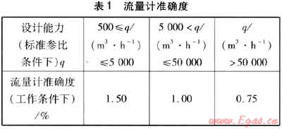 ② 流量計準確度應符合表1的規(guī)定。同時必須注意,過分準確度的要求會增加不合理的費用。
