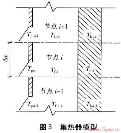集熱器模型見(jiàn)圖3,基于有限差分的數(shù)值解法,將集熱器沿x方向分成n個(gè)節(jié)點(diǎn)。