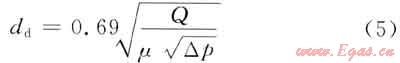 得到噴嘴當(dāng)量直徑為: