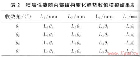 數(shù)值模擬結(jié)果顯示性能較好的噴嘴為L(zhǎng)2θ2~L4θ4的9組噴嘴(表2)。