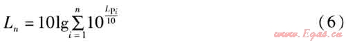 LPi——n個(gè)聲源中第i個(gè)聲源的聲壓級(jí),dB