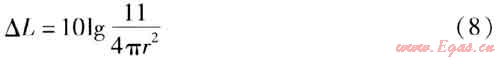點(diǎn)聲源隨傳播距離增加產(chǎn)生的聲壓級(jí)衰減值為: