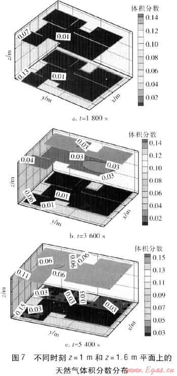 ③ 模擬得到了室內(nèi)天然氣泄漏三維濃度場,為安全管理、事故調(diào)查、工程設(shè)計以及防災(zāi)救災(zāi)等提供依據(jù)。
