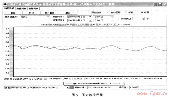 從圖5中可見.在3天內(nèi)壓力從1.51MPa降至1.45MPa,存在微漏,通知場站運(yùn)行部檢查,發(fā)現(xiàn)進(jìn)站閥門法蘭處微漏。