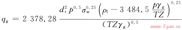 式中:qg為氣流攜帶液滴所需的最小流量,104m3/d;dt為油管直徑,m;p為氣體流動(dòng)壓力,MPa;T為氣體流動(dòng)溫度,K;Z為天然氣偏差系數(shù),無(wú)因次;γg為氣體相對(duì)密度,ρl為液體密度,kg/m3;σw為氣液表面張力,mN/m。
