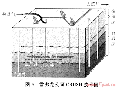 該技術(shù)的特點為:①采用了閉路循環(huán)。未向地層注入流體,提高了能量利用率,減少了對環(huán)境的影響。②能量自給自足。除了啟動裝置時需要天然氣等燃料外,一旦該工藝正常運轉(zhuǎn)后就可利用自身產(chǎn)生的干餾氣來作為加熱井的燃料。但關(guān)于地下水的測試與分析,干餾前和干餾過程中脫水的問題尚未研究。