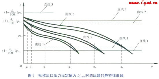 調(diào)壓器靜特性的優(yōu)劣需要結(jié)合調(diào)壓器的進出口壓力范圍、流量范圍、穩(wěn)壓精度等級、關(guān)閉壓力等級、關(guān)閉壓力區(qū)等級和靜特性曲線族的關(guān)閉壓力區(qū)等級等參數(shù)進行綜合分析。