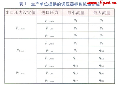 生產(chǎn)單位提供的調(diào)壓器的標稱流量參數(shù)見表1。表1中的p2,int為調(diào)壓器的標稱中間出口壓力設(shè)定值,p1,av為調(diào)壓器的標稱平均進壓力值。
