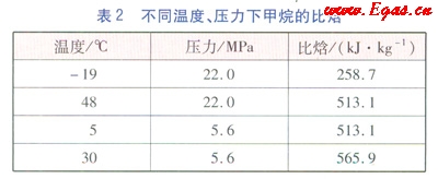 不同溫度、壓力下甲烷的比焓見(jiàn)表2。
