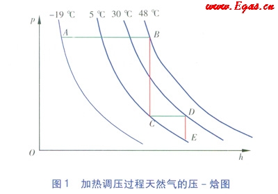 在工程中常把焦耳一湯姆遜系數(shù)近似取常量,對(duì)于壓縮天然氣,其值約為4℃/MPa,這樣根據(jù)天然氣的已知參數(shù)可計(jì)算所需的加熱量。