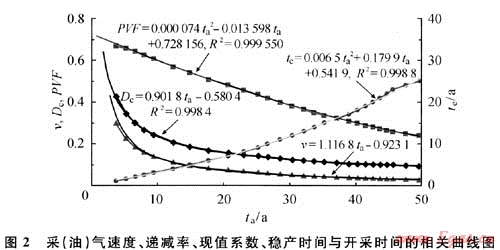 2) 利用采(油)氣速度、遞減率、現(xiàn)值系數(shù)、穩(wěn)產(chǎn)時間與總生產(chǎn)時間的相關(guān)關(guān)系,可計算不同條件下的儲量起算標(biāo)準(zhǔn)。