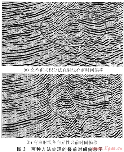 綜上所述,各向異性彎曲射線疊前時(shí)間偏移比直射線疊前時(shí)間偏移在成像能力上有更大優(yōu)勢。但在速度縱橫向變化劇烈時(shí),要恢復(fù)地下構(gòu)造形態(tài)及復(fù)雜斷塊成像時(shí),必須進(jìn)行深度偏移。盡管疊前深度偏移方法是提高成像精度的必要手段,但真正影響成像精度的是速度模型。因此,層速度反演及精細(xì)速度建模成為疊前深度偏移處理的關(guān)鍵環(huán)節(jié)。從克希霍夫積分法與波動(dòng)方程疊前深度偏移的研究對比結(jié)果中可以看出,波動(dòng)方程疊前深度偏移斷點(diǎn)歸位準(zhǔn)確、頻率振幅特征保持較好,在復(fù)雜構(gòu)造成像及巖性勘探中確實(shí)有它的優(yōu)勢,是解決復(fù)雜構(gòu)造地震資料處理的新途徑。但是克?;舴蚍e分算法有很強(qiáng)的適應(yīng)性和高效的運(yùn)算能力及目前不斷改進(jìn)的算法提高了偏移精度。因此,可以結(jié)合兩種算法的優(yōu)勢,取得更好的偏移效果。
