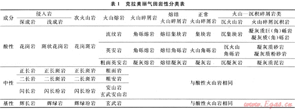 按照“成分+結構、構造+成因”的分類原則[1],對克拉美麗氣田石炭系火山巖巖石進行了分類及命名,共分為7大類、28小類、上百種巖石類型(見表1)。
