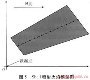 噴射火焰采用Shell噴射火焰模型。Shell模型將火焰模擬為一傾斜的平截頭圓錐體,如圖5所示。