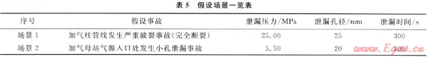 假設(shè)場景1:CNG壓縮機3臺同時運行,此時排:氣量約為2.60kg/s,加氣柱被槽車撞到,發(fā)生嚴(yán)重破裂事故,管道完全斷裂。