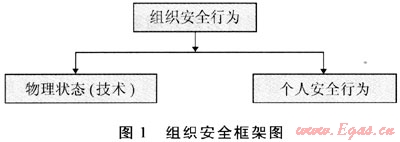 組織安全行為是組織通過(guò)運(yùn)行其安全管理體系而產(chǎn)生安全知識(shí)、意識(shí)、習(xí)慣的整體行為。從組織安全框架圖(圖1)可以看出,員工個(gè)人的安全知識(shí)、意識(shí)和習(xí)慣是組織安全行為產(chǎn)生的結(jié)果,通過(guò)個(gè)人行為糾正方法可以控制個(gè)人不安全行為以改善這個(gè)結(jié)果。組織通過(guò)安全培訓(xùn),提高安全文化素質(zhì),塑造優(yōu)良的組織安全氛圍,制定有效的安全管理體系,從根本上改善組織安全行為,從源頭上預(yù)防事故。