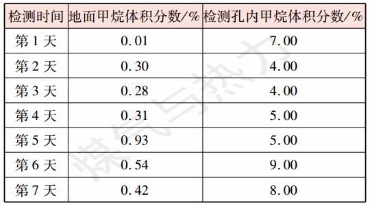 表1   E管道地面與孔內(nèi)甲烷體積分數(shù)