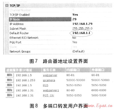 c. 在路由器內(nèi)建立虛擬服務(wù)器,利用端口映射原理(即NAT,地址轉(zhuǎn)換功能),將Web服務(wù)(端口80-81)訪問(wèn)指向熱力站PCD控制器,將ETHER-S-BUS訪問(wèn)(端口5050)也指向PCD控制器。見(jiàn)圖6。