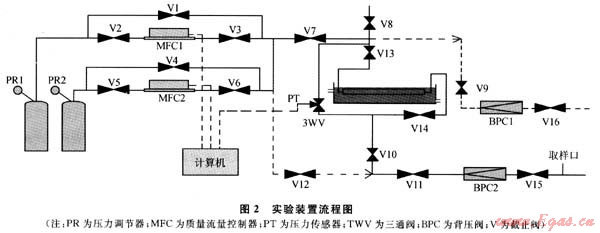 用如圖2所示的實(shí)驗(yàn)流程進(jìn)行脫硫和再生。采用甲烷硫化氫混合進(jìn)氣初步模擬煤層氣,其中H2S含量222.3mg/m3,總流量為280mL/min。脫硫床為內(nèi)徑10mm、長250mm的不銹鋼管。床層溫度維持298K,再生時(shí)將床層放至常壓并用25%流量的甲烷正向吹掃。