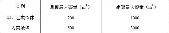 表4.2.3 甲、乙、丙類液體儲(chǔ)罐分組布置的最大容量