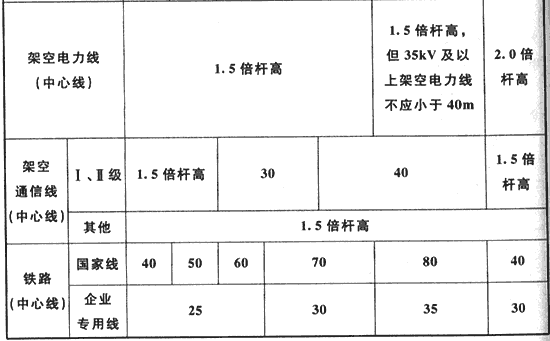 表4.3.6 可燃、助燃?xì)怏w儲(chǔ)罐與鐵路、道路的防火間距(m)