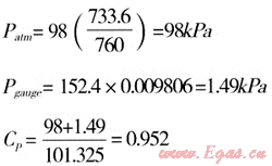 若已知一個低壓系統(tǒng)的壓力=152.4mm水柱,該地離海平面的高程差為304.8m,當?shù)卮髿鈮簽?36.6mmHg,基礎(chǔ)大氣壓為760mmHg。換算系數(shù)1mm水柱=0.009806kPa。