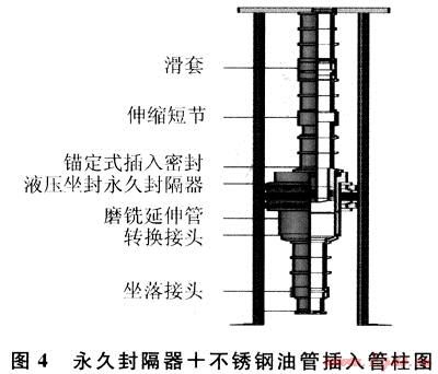 1) 對(duì)于預(yù)期產(chǎn)氣量高、腐蝕條件苛刻、生產(chǎn)周期長(zhǎng)的高溫高壓氣井,采用生產(chǎn)封隔器+不銹鋼油管插入的方式完井(圖4),生產(chǎn)完井管柱組成:油管+坐落接頭+油管+生產(chǎn)封隔器+油管+滑套+伸縮短節(jié)+油管+油管掛+井口裝置。其管柱功能如下:在高壓、高溫生產(chǎn)條件下,保證管柱氣密封;可滿(mǎn)足生產(chǎn)過(guò)程中壓井、測(cè)試、泡排工藝的需要;保證多年不動(dòng)管柱,氣井能長(zhǎng)期安全生產(chǎn);保護(hù)套管不受CO2氣體腐蝕。