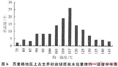蘇里格地區(qū)上古生界儲層成巖作用主要經歷了壓實作用,壓溶作用,火山物質的水化、脫水、蝕變和溶蝕作用,白生礦物的析出及膠結作用等。其中壓實及硅質膠結作用是儲層致密化的主要原岡。根據石英次生加大邊中流體包裹體測溫及其溫度分布頻率,可以認為90~140℃是石英膠結物形成的主要時期(圖6),